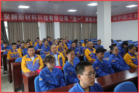 2018年4月28日,在生產(chǎn)辦公樓三樓會議室召開“五一”表彰大會,對2017年度優(yōu)秀員工、先進部門、標兵進行表彰。常務(wù)副總呂宏誠、生產(chǎn)副總王壽賢、工會主席謝曉鴻、總經(jīng)理助理劉思富和陳尚敬出席表彰大會。