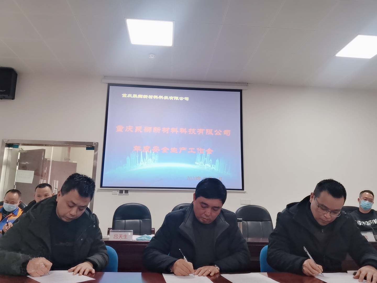 2020年的最后一天,聚獅公司生產車間三樓,一場關于安全環保工作的總結大會在這里召開。出席本次會議的有公司領導、所有中干和骨干員工。會上,公司領導班子就分管領域的安全環保工作進行總結報告,會議現場氛圍濃厚,全體參會人員著工裝、看資料、做筆記。